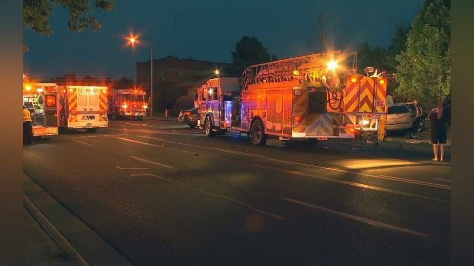 According to reports, four people were struck inside one of the vehicles and at least two SUVs were involved in the crash.